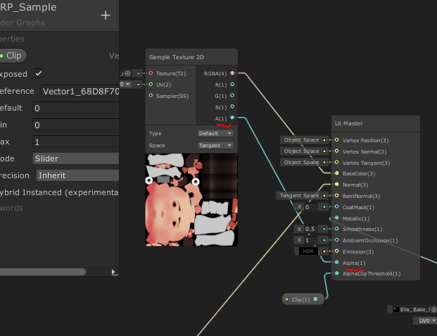 메인텍스쳐의 알파값을 노드에 연결하면 끝나지만 아무래도 프로퍼티도 추가해주면 더 좋습니다.